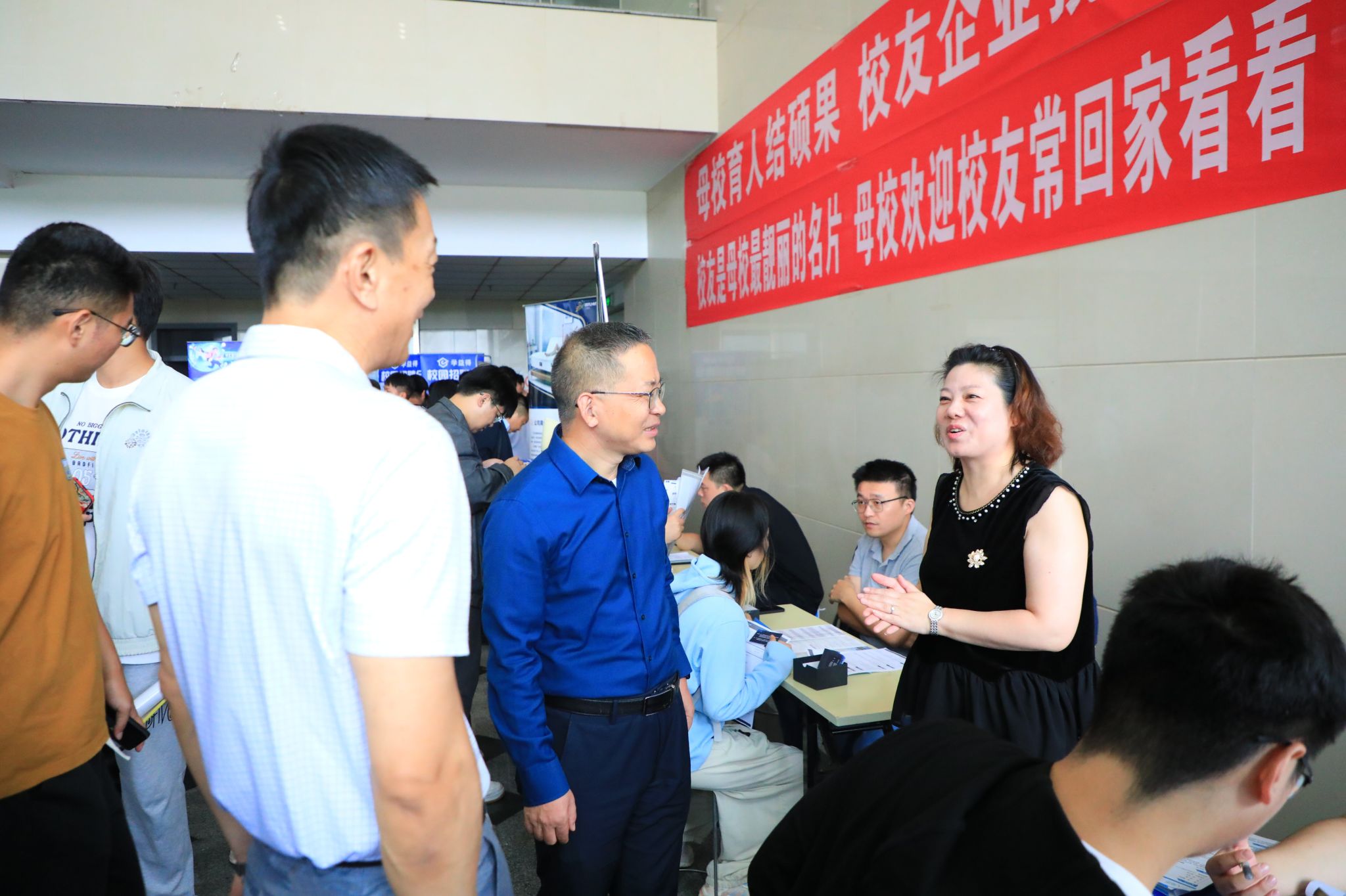 9月25日上午,“校友携手 筑梦未来”2025年校友企业秋季专场招聘会在枚乘路校区逸夫楼二楼大厅举行。校党委书记常绿莅临现场指导工作。